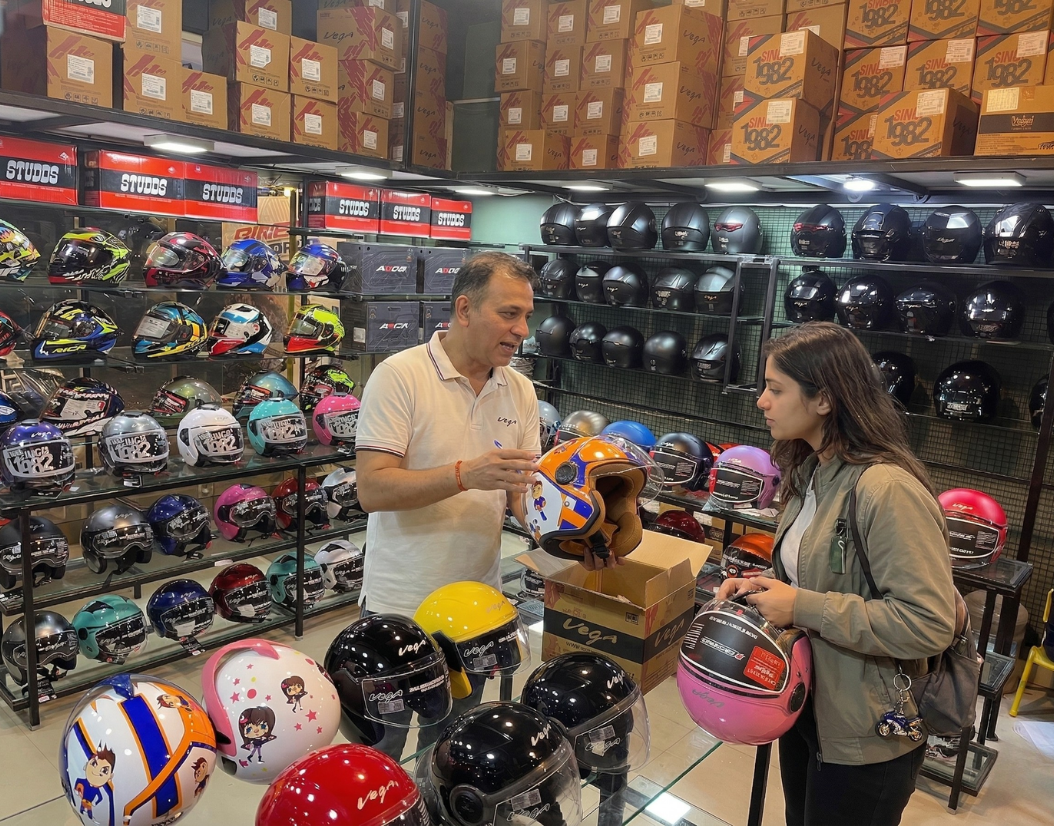 Proudly featuring exclusive brands like STUDDS, VEGA, STEELBIRD, AXOR, and SMK.